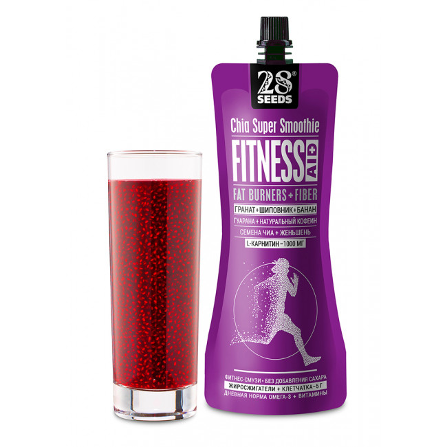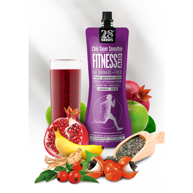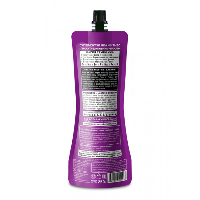 Состав: вода, гранатовый сок, семена Чиа, банановое пюре,