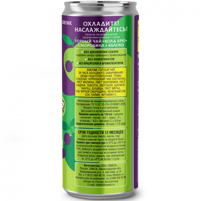 Состав: горный чай 24 часа холодного заваривания (вода подготовленная,