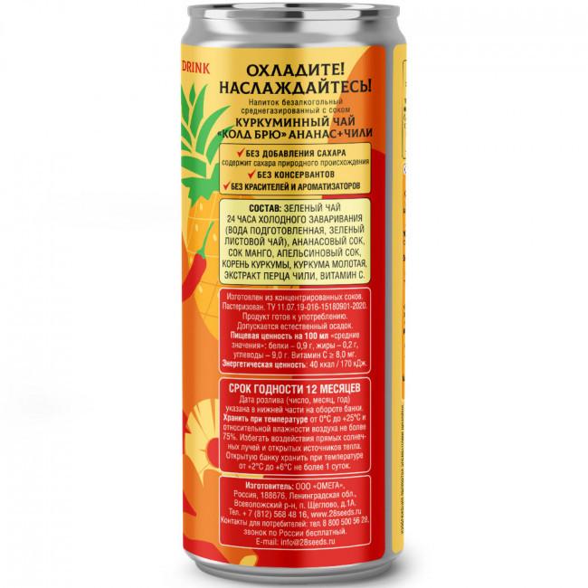 Состав: Куркуминный Чай "колд брю" АНАНАС - ЧИЛИ: зеленый чай 24 часа холодного