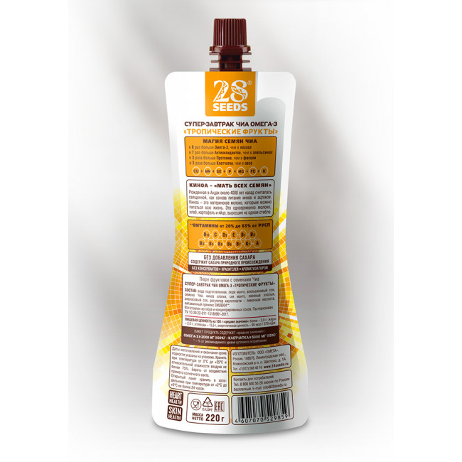 ЧИА+КИНОА+ОВЕС, дополненных здоровой силой ягод и фруктов.